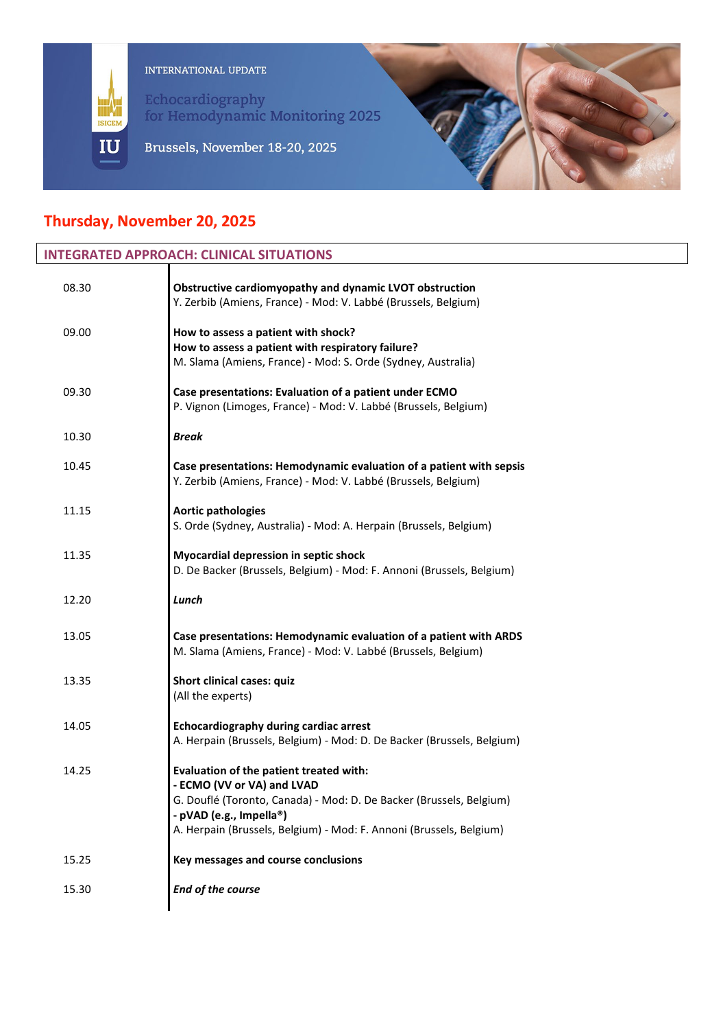 Live sessions at the intensive care bedside at Erasmus University Hospital with transthoracic and transesophageal echocardiograms transmitted to the audience for participation in hemodynamic assessment, with courtesy and respect.