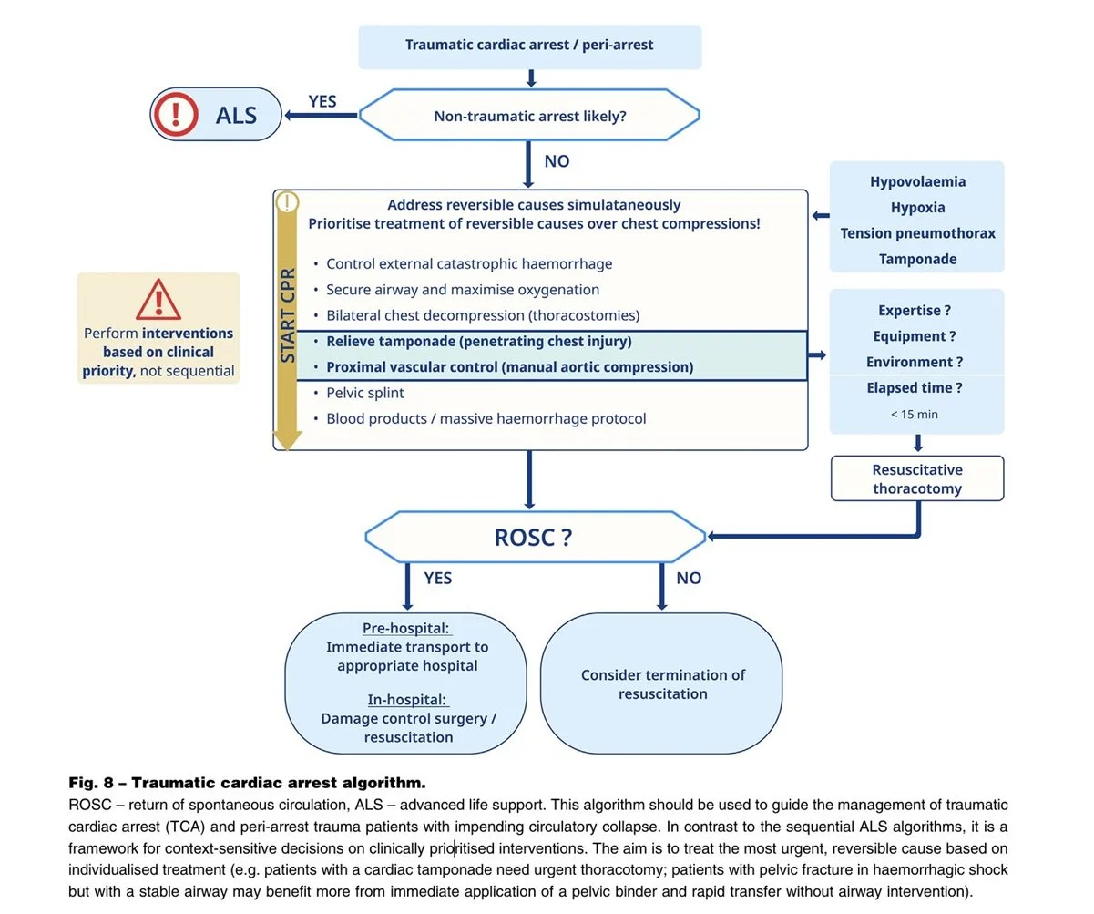 Traumatic cardiac arrest algorithm (european resuscitation council guidelines 2025)